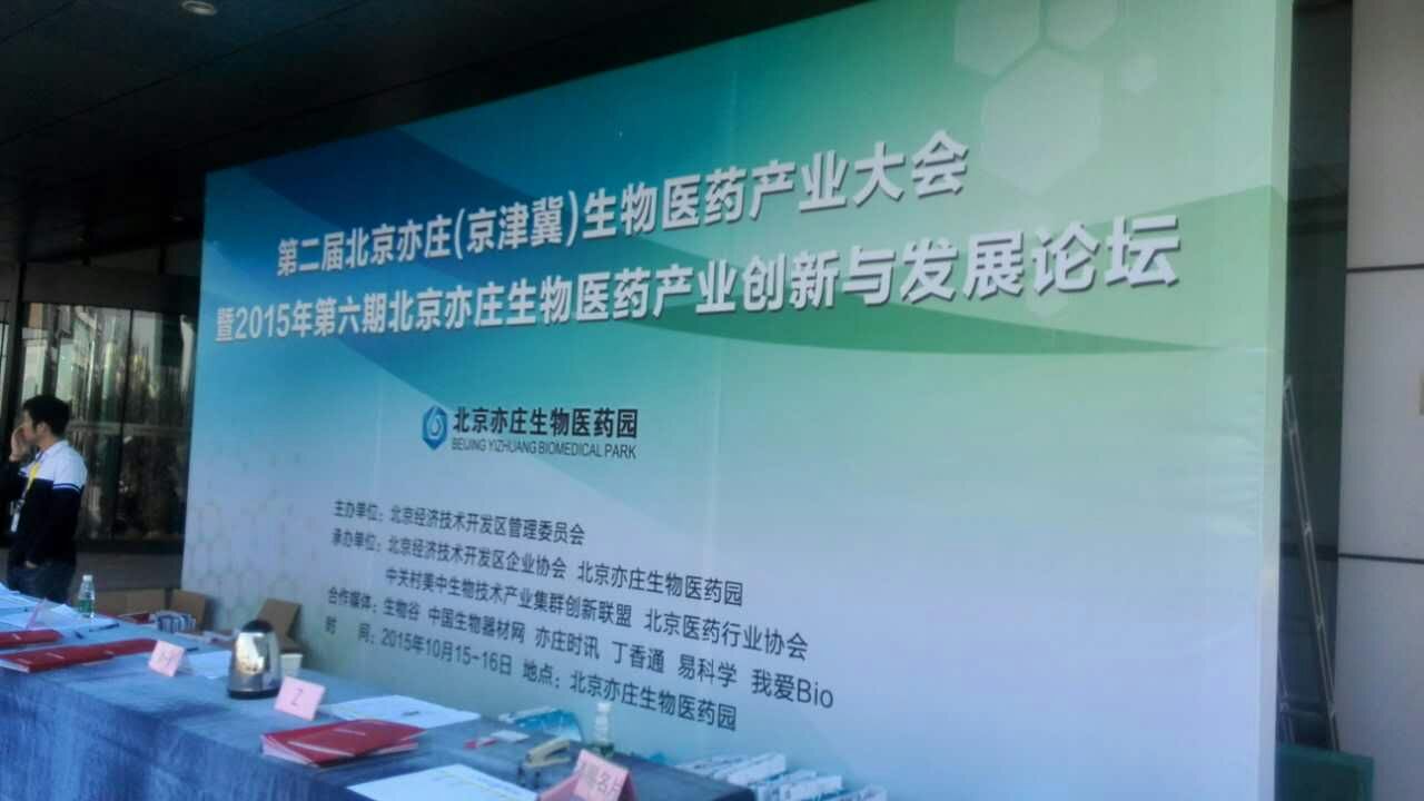 第二届北京亦庄(京津冀)生物医药产业大会暨2015年第六期北京亦庄生物医药产业创新与发展论坛10月15号、16号在北京经济技术开发区(BDA)盛大举行。大会旨在推动区域合作工作,为京津冀地区生物医药企业创立交流、展示平台,提供项目对接机会,整合产业链资源,共促产业发展。大会共设置四大板块:高端论坛、2015版药典专题论坛、精准医疗论坛和京津冀企业投融资对接会。爱生受邀参加此次产业大会。
