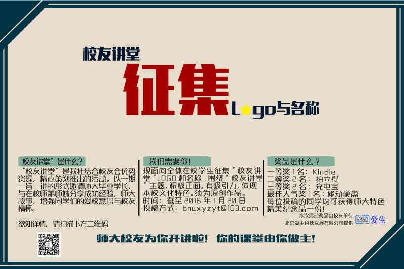 爱生协办北京师范大学“校友讲堂”名称及LOGO设计大赛